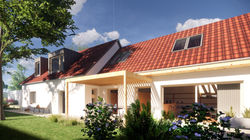 V tomto zadaní bolo našou úlohou vytvorenie domova pre klientov a to znamenalo znovu vyriešenie pôdorysu oboch domov, teda pôvodného storočného domu a novšej prístavby a ich vzájomného spojenia do jedného fungujúceho celku. Starý dom v novom prevedení bude využívaný ako pekný veľký denný priestor, ktorý je doplnený o otvorenú galériu po celej výške domu. Novšia prístavba bude využitá ako nočná zóna domu so zázemím. V prízemí domu sú situované dve izby a podkrovie obsahuje ďalšie dve izby, z ktorých jedna je pracovňa. Z podkrovia je tiež prístup do galérie na dennou častou domu. V projekte sme sa snažili aj o čo najlepšie prepojenie domu so záhradou, dvorom a bazénom a dom sme doplnili o vonkajšie pobytové terasy.